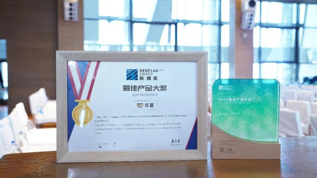 2025年12月16日,由HRflag主办的“新旗奖(NEWFLAG AWARDS)颁奖典礼”顺利举行,牛客摘得“2026新旗奖·最佳产品大奖”。作为人力资源服务领域最具影响力的奖项之一,“新旗奖”致力于发掘真正具有前瞻性与实用价值的HR科技产品。