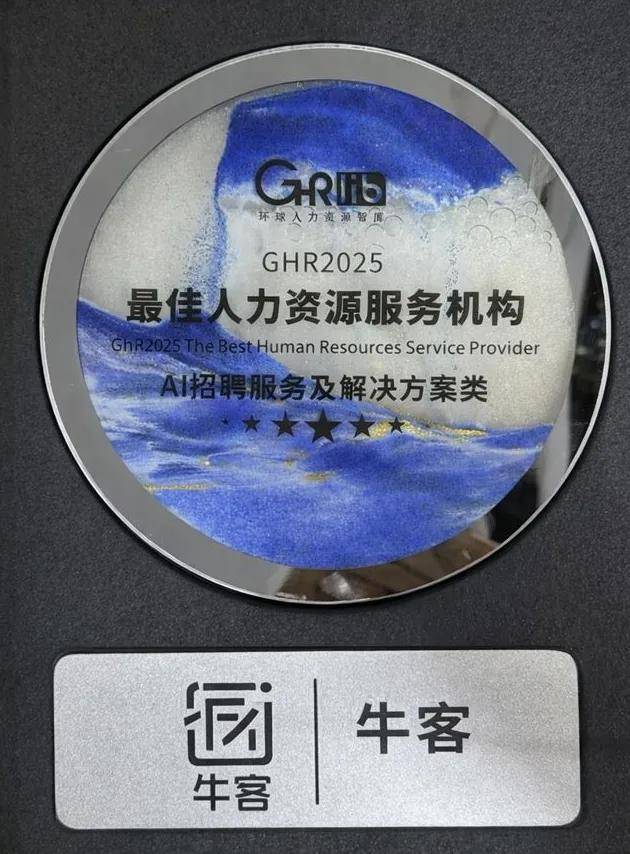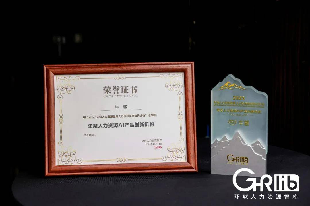 2025年12月11日,在上海举行的“环球人力资源盛典暨中国人力资源行业颁奖典礼”上,牛客获评“GHR年度人力资源AI产品创新机构”。
